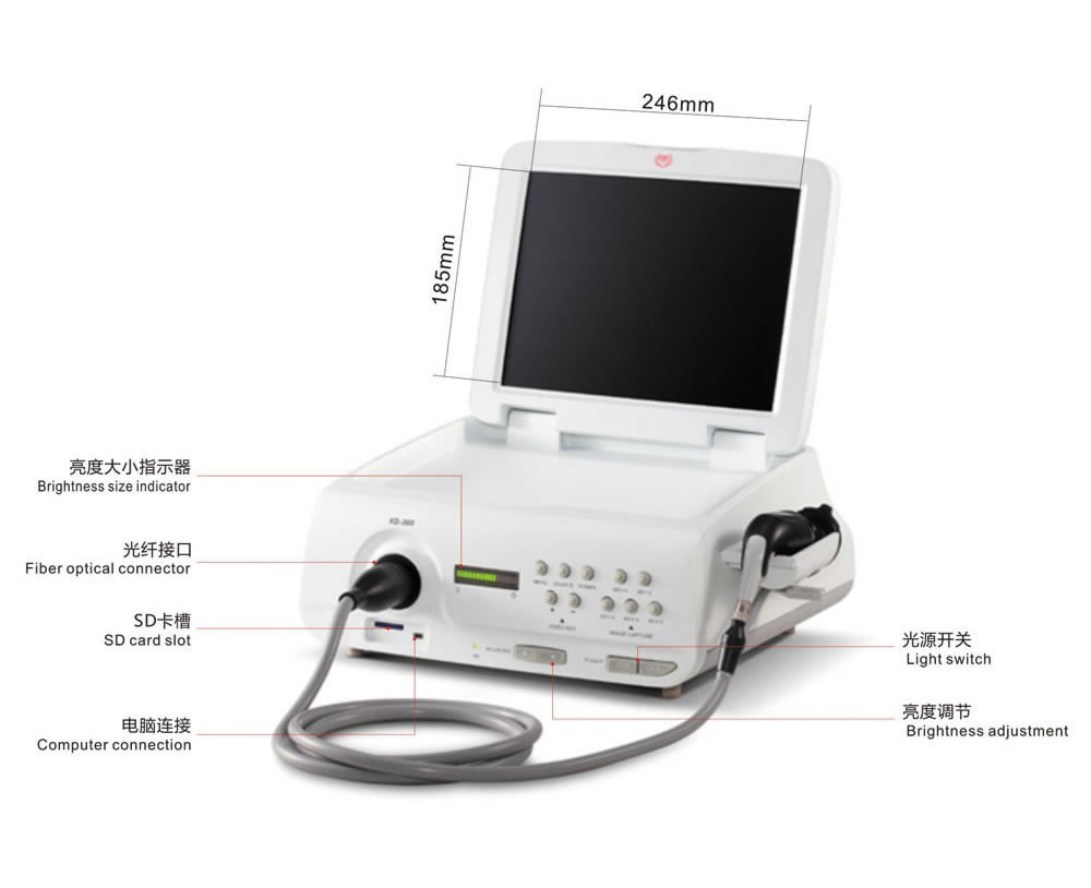 Esta fuente de luz fría presenta un innovador diseño, ya que incorpora la CCD y una pantalla planta, para la visualización y la colección tanto de animaciones como de fotografías, de esta manera conseguir un material médico de gran valor. Su uso es compatible, no es dañino, y sí es aconsejable para profesionales de la ginecología, otorrinolaringología, cirugías, entre otras.